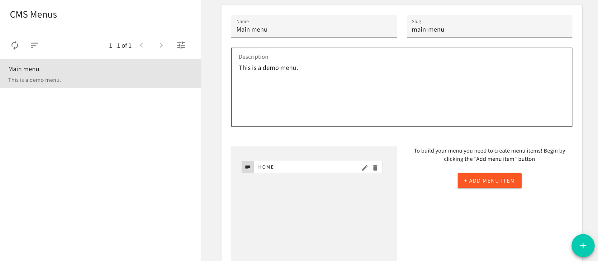 As with any other website, you will have one or more menus that users can use to navigate through your website. By default Webiny will come with just one menu, which is your main menu. You can add, remove, or edit the items in that menu to adjust it to your needs.